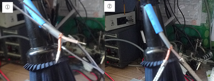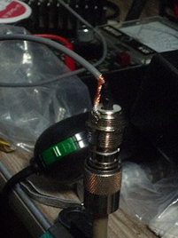@ソーターバランから約5pの所で、同軸の末端を写真のように加工します。 |