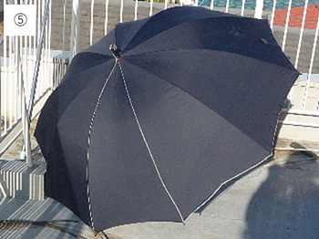 傘の骨部分を傷つける恐れがあり、注意深く作業する必要が有ります。 |