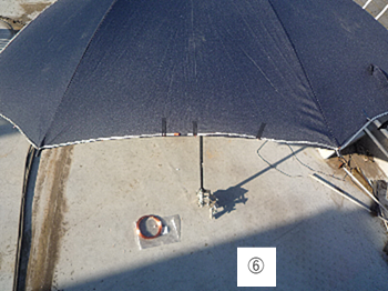 ヘキサビームを鉄筋の2階屋上にて、伸縮ポールに約5m(傘の先端まで)になるように設置して、 |